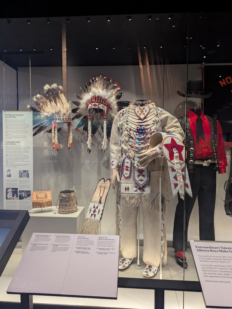Lors de notre visite au SAM Centre, nous avons eu la chance de faire une rencontre marquante. Sur place, une volontaire issue des Premières Nations a pris le temps d’échanger avec nous. Elle nous a raconté, avec beaucoup de fierté, l’importance des peuples autochtones dans l’histoire du Calgary Stampede depuis ses toutes premières éditions.