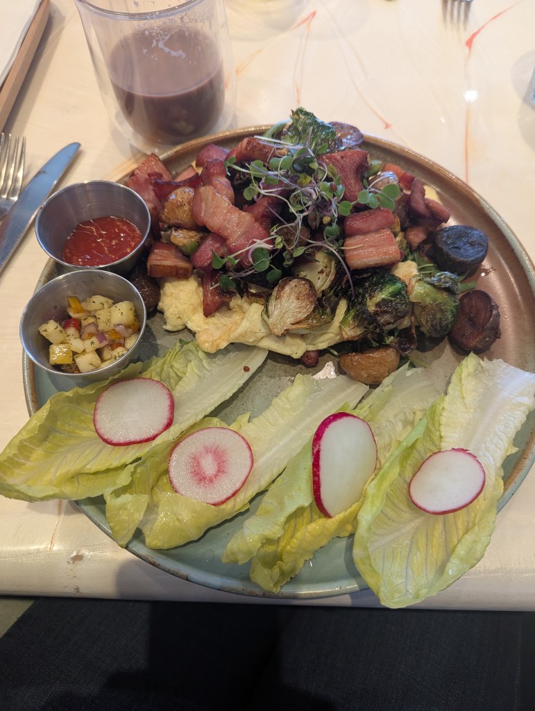 Mention spéciale pour leur chocolat chaud , ainsi que pour la variante avec une pointe de peppermint : réconfortant, parfumé juste ce qu’il faut, parfait pour les matinées fraîches de Calgary. Une boisson qui accompagne à merveille les assiettes généreuses et prolonge le moment.