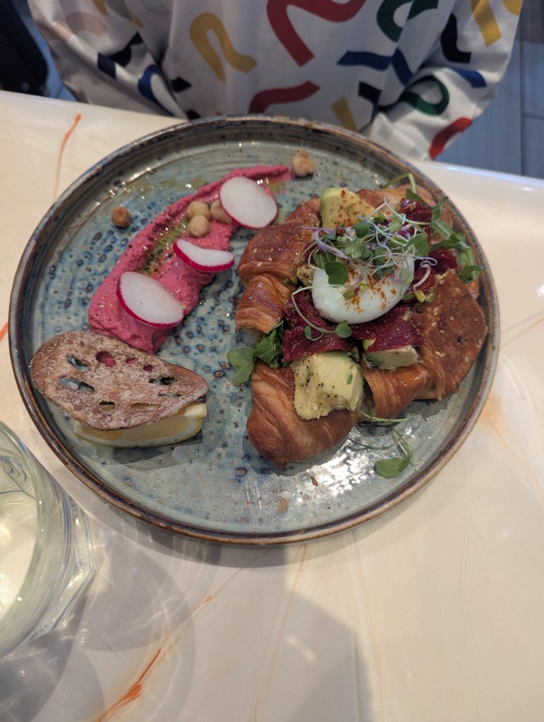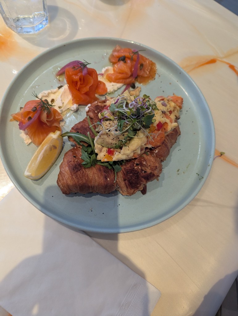 Ici, les œufs sont rois. Déclinés sous toutes leurs formes, ils s’invitent dans des assiettes aussi créatives que copieuses. Mais ce qui fait vraiment la signature de la maison, ce sont leurs croissants salés — dorés, feuilletés, généreusement garnis — qui transforment un classique français en véritable plat de brunch nord-américain.
