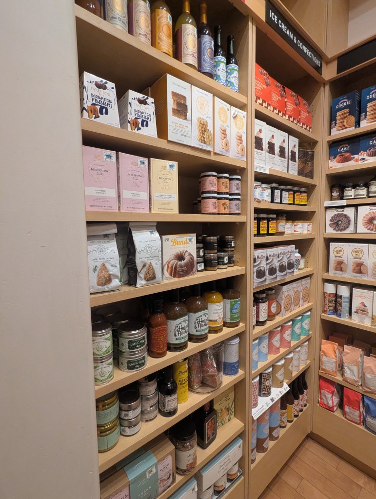 Vaisselle raffinée, condiments, thés, casseroles en cuivre, linge de maison élégant, accessoires culinaires parfaitement mis en scène : tout évoque les repas de famille, les moments chaleureux, les grandes tablées, et certaines scènes de films ou d’émissions culinaires. Le magasin a une signature olfactive à part, car chaque jour on y fait bouillir dans une cocotte en fonte des épices dont l’odeur agréable se répand dans les lieux. Même sans achat, on repart avec des idées plein la tête. Certaines thématiques sont très liées à l’actualité, ainsi au moment de Noël, on retrouve tout un assortiment de douceurs typiques de cette période. On peut acheter des bases pour cocktail Bridgerton, des chocolats St Valentin ou encore de la vaisselle en lien avec le nouvel an lunaire asiatique. Mention spéciale pour les amateurs de thés, le magasin distribue les fameux thés Fortnum & Mason, incontournables de Londres, ainsi que différents cookies. Les emballages sont aussi très attractifs et peuvent apporter une touche déco dans votre cuisine.