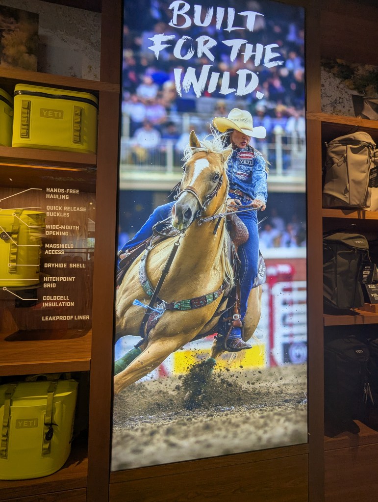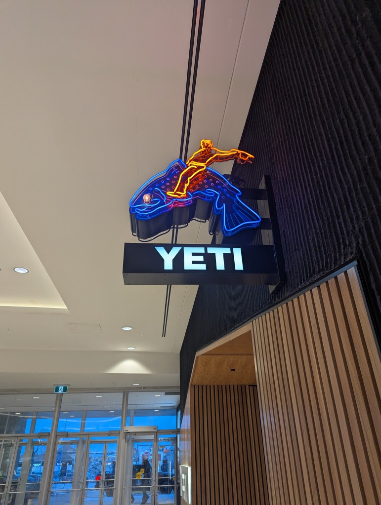 La maniĂšre dont YETI sâimplante et communique localement đ€ devrait ĂȘtre Ă©tudiĂ©e. Ă Calgary, la marque a mĂȘme ouvert un magasin physique au Chinook Centre đïž â un lieu trĂšs âpremiumâ de la ville. L’ensiegne lumineuse du magasin donne le ton lâunivers est explicite : imagerie de rodĂ©o đ, chapeau en lâair, codes cowboy⊠un clin dâĆil direct Ă lâAlberta.