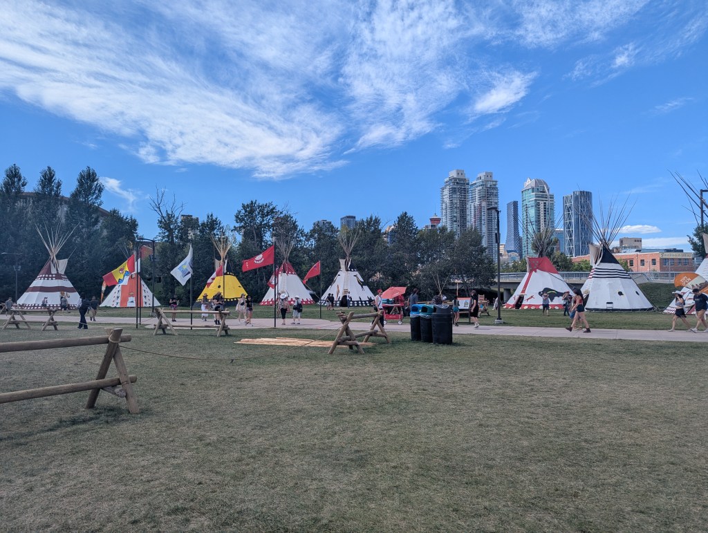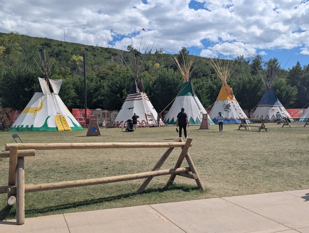 Dès 1912, les Nations autochtones sont invitées à participer – une décision rare et audacieuse à l’époque. Aujourd’hui encore, le Elbow River Camp rassemble les nations Siksika, Tsuut’ina, Piikani, Stoney Nakoda et Kainai. Tipis décorés, danses, artisanat, pow-wows, cuisine traditionnelle : c’est un espace d’échange, de célébration, et de respect des cultures des Premières Nations. 🧡